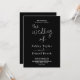 Este convite de casamento preto e branco é perfeito para um casamento moderno. O design simples apresenta caligrafia branca elegante em um fundo preto.