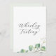 Este elegante sinal de provando de uísque verde é perfeito para um casamento simples. O moderno elegante design apresenta uma disposição botânica natural de eucalipto, folhas e plantas com um sutil sotaque de hortelã verde-aquarela.