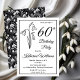Neve elegante mês de nascimento design de "60ª Festa de aniversário" floral de design floral com um motif floral de queda de neve com um padrão floral de queda de neve preto e branco atrás.