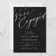 Simples e mínimo de caligrafia branca negra e branca estamos engajados no convite de festa de noivado de script.