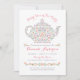 Chá de fraldas de bule de chá de estilo herdado moderno Convite decorado com espirais, folhas de chá, vinha, flores e bagas. Bonito padrão de videira herdada nas costas. Muito charmoso e perfeito para qualquer festa de chá. Todos os textos podem ser alterados. Ilustração original de pj_design.