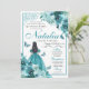 Elegante Teal Floral Quinceanera Convite Aniversário