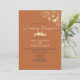 Um convite elegante, moderno, à recepção de casamento de terracota com pássaros apaixonados, um lugar floral de ouro falso e um simples roteiro caligráfico.
