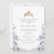 Convites Elegante Tiara Dourado rosas Azuis Quinceañera