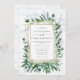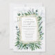 Elegante Vegetação, um belo design que retrata uma densa coroa de folhagem verde escura suculenta em torno de uma moldura geométrica. A moldura sutil revela elementos da vegetação por baixo, mostrando uma exposição botânica a espreitar. Este conjunto de convite de casamento é perfeito para todas as estações, com uma variedade de estilos e cores disponíveis.