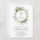 Celebre a primeira comunhão do seu filho com este elegante convite botânico temido com elegante cor d'água eucalipto verde em verde e ouro