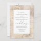 Este elegante convite de casamento apresenta um histórico de marfim vintage angustiado com elementos de damasco de ouro ornamentado e efêmera de escrita manual desbotada. O texto personalizável da cinza de carvão é enquadrado por um retângulo branco. O design de fundo é repetido no reverso.