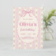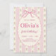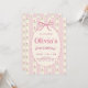 Este design apresenta um fundo vintage, adornado com rosas e listras cor-de-rosa. Suportado com um arco cor-de-rosa e complementado por uma fonte rosa elegante, este convite captura uma estética giratória, chique e timidamente vintage. Totalmente personalizável para se adequar aos seus detalhes de eventos, é a maneira perfeita de dar o tom para uma bela celebração.