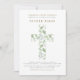 Convide familiares e amigos para o seu evento com este convite para batismo floral personalizável. Apresenta uma cruz verde com um padrão verde correspondente. Personalize esse convite elegante para o batismo adicionando seus próprios textos. Este convite para o batismo floral de primavera é perfeito para batismos infantis e batismos de primavera.