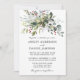 O Cartão de Convite para Casamento de Molerna Botânica de Aquarela Elegante moderna inclui amoras ocas, folhas de eucalipto, folhagem botânica verde, folhas azuis empoeiradas e outros belos verdes botânicos. Verdes.