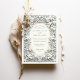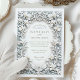 Coloque a palco para o seu elegante casamento com este maravilhoso convite que contém íris brancos graciosos cercados por intrincada folhagem. O design de ornamentado emboscado com falso é complementado por um fundo azul de ardósia suave, criando um aspecto refinado e sofisticado. Ideal para casamentos românticos, formais ou inspirados em vintage, este convite combina charme de eterno com detalhes artísticos. Observe que os elementos gravados são impressos e não incluem texturas levantadas reais ou acabamentos metálicos.