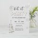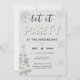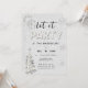 Um elegante, único preto e branco "Deixe a festa!" Modelo de convite de festas de Natal com pinheiro e flocos de neve cobertos de rochas e brilhos (são efeitos digitais, não pedras reais ou reluzentes!) e um cinzeiro, fundo de inverno, junto com a palavra PARTIDO coberta pelos mesmos rostos (digitais) e reluz. O título está escrito na caligrafia moderna. Tipografia moderna, simples e limpa, totalmente editável.