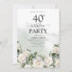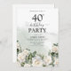 Celebre 40 em estilo com este elegante convite de aniversário branco e verde. Apresentando flores de aquarela e acentos de verde-chic, ele define um tom eterno e sofisticado para sua celebração de marco. Personalize com os detalhes do seu partido para obter um toque personalizado. Perfeito para festas de jardim, vinhos clássicos ou qualquer evento elegante. Torne 40 inesquecível com este design!