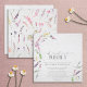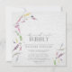 Chá de panela Brunch e Bubble, quadrados modernos e elegantes, com motins de flor silvestre a aquarela em tons suaves de rosa-pincel, lilás e lavanda, amarelos, azuis e folhas botânicas verdes delicadas. Personalize os detalhes do seu chá de panela em preto suave, acentuado com uma bela caligrafia manual moderna. Copyright Elegant Invites, todos os direitos reservados.
