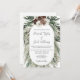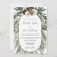 Este elegante convite de pinho de casamento no inverno é perfeito para um elegante casamento de férias. O design apresenta belas flores brancas de aquarela com pinheiros em cones, e verde florestal. Este é um esquema de cores perfeito para um casamento no inverno. Faça este convite seu, incluindo seus nomes e todos os detalhes do seu casamento. Para mais personalização, use a ferramenta design avançada para modificar este modelo.