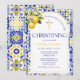 Convites Elegantes Azulejos Azuis com Limão Mediterrâneo Ba