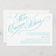 Um convite elegante para a Quinceanera, com um fundo branco e "Mis Quince Años" em texto azul turquesa.