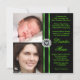 Lindo modelo de convite duplo de Quinceanera preto e verde lima. Este lindo convite de Quinceanera verde lima e preto é facilmente personalizado para o seu evento, bastando clicar no botão "Personalize!" para começar a adicionar suas fotos e detalhes do evento, estilo de fonte, tamanho e cor da fonte e texto. Por favor, note que todos os adesivos, cartões e desenhos de convites que você encontrará no Zazzle são gráficos impressos sem joias, laços, relevos, rebaixos ou peças ou partes adicionadas.
