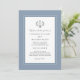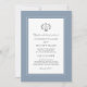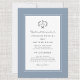 O elegante design de casamento em azul empoeirado apresenta caligrafia moderna e script em cinza carvão dispostos em uma bela borda azul empoeirada chique. A borda é acentuada com uma elegante borda branca delicada.