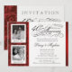 Convites de Aniversário Elegantes -- Altere o número para qualquer ano que esteja celebrando. Corte damasco Vermelho Real -- 2 inserts de fotos para "então e agora" com letras em script vintage e detalhes retrô. Fácil de personalizar e único por você! Basta carregar suas fotos e adicionar os nomes, data e detalhes para a celebração do seu Aniversário. Perfeito para emoldurar como presente. **NOTA: Tamanho para cartões de convite 5.5 x 7.5. Clique em "Personalizar" para alterar o tamanho e o tipo de letra. Outros tamanhos e estilos disponíveis na galeria. © Teri Francis. Selos e cartões de agradecimento correspondentes disponíveis mediante solicitação.