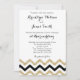 Convites de casamento elegantes com texto preto personalizado, quando o casal hospeda com suas famílias, impressos em fundo branco com ouro (faux, print as e image) e padrão de fevron preto