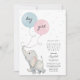 Revelação de gênero, convite de festas de menino ou menina. Personalize as informações editáveis para sua celebração. Perfeito para um tema de bebê elefante. Apresenta um elefante desenhado à mão e balões azuis e cor-de-rosa, todo o texto é editável. Excelente para diferentes ocasiões. Garoto e chá de fraldas.