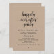 Linda Script Casual Moderno, em preto, em papel de fundo kraft castanho, Anúncio de Elopemento de Casamento, Cartão de Convite (Felizmente Nunca Depois da Festa). Isto é perfeito para a sua recepção de casamento e festa de celebração de posto. Adicione seus detalhes em fontes / letras correspondentes. #TeeshaDerrick