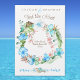 Anuncie sua cerimônia de elopemento tropical com uma coroa azul, verde e marrom de hibiscus. Lindas flores azuis de hibisco, folhas verdes claras de banana são bonitas com borda azul e tartaruga de tartaruga marinha. Folha de monstera castanha e verde complementa o arranjo floral azul claro. Um belo jogo para paletas azuis de malibu ou azuis de convite de casamento de Bahama.