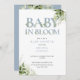 Convites Em Bloom Dusty Blue Greenery Chá de fraldas de Cód