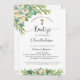 O convite do Batismo Elegante em espanhol, com detalhes florais elegantes de cor aquática verde e elementos caligráficos modernos escritos à mão, tanto na frente como no verso. Sexo Convite neutro, ideal para batismos de menina ou de menino. Volte com um quadro moderno estilo logo com a data e o nome do batismo do seu filho. Folhagem verde e flores numa bela mistura de tons verdes, brancos, amarelos, cinzas e dourados. Estilo elegante, moderno e novo. Este mesmo design também está disponível em inglês.