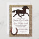 Este convite ocidental do casamento do país rústico é perfeito para todo o casamento do tema do vaqueiro ou casamento do estilo country. Caracteriza país rústico um design impresso de serapilheira em ambos os lados do convite com um cavalo que funciona na parte superior e um design dos calçados do cavalo na parte superior. A parte traseira do convite tem a mesmos serapilheira rústica do país, cavalo, e design em ferradura com a palavra "amor" no roteiro. É um anúncio original do casamento para um casamento do vaqueiro ou o casamento do país. Você poderia mudar esta palavra aos nomes dos noivos se você quer. Apenas use "personalizam-no" botão.