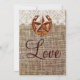 Este convite ocidental do casamento do país rústico tem uma ferradura rústica com uma estrela no meio sobre a parte superior de um design impresso do laço. O fundo é um design impresso de serapilheira. A parte traseira do convite tem o mesmos design e laço em ferradura do vaqueiro do estilo country rústico com a palavra "amor" no roteiro. Você poderia mudar este fraseio para personalizá-lo com os nomes dos noivos se você quis a. Estes convites do casamento do tema do país são perfeitos para casamentos do vaqueiro, casamentos do país, ou todo o casamento rústico. Note por favor que a serapilheira e o laço são apenas design impresso, ele não é tecido real de serapilheira. É um convite impresso plano. Mas dá-lhe o olhar bonito de um convite mergulhado elegante em uma fração do preço. Preços com desconto quando você ordem 50+ convites.