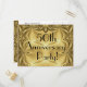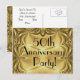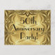 Cartões-postais de convite com visual vintage dourado decorativo "Festa de Aniversário de 50 anos" com texto preto elegante. Fácil de personalizar com todas as informações necessárias no verso ou simplesmente exclua o texto de exemplo para escrever à mão posteriormente. Ou altere o texto da frente para outra ocasião especial, como outros aniversários, casamentos, aposentadorias ou um convite de aniversário "Salve a Data". Elegantes e sofisticados, com aparência luxuosa, mas acessíveis, cartões-postais com um deslumbrante design dourado que realmente se destacam com estilo para seus convidados!