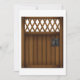 Este design é um portão marrom de madeira que tem um pedaço de design de trellis no topo. Este design de portão de madeira parece excelente nestes convites. Perfeito para si mesmo ou como presente