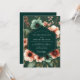 Experience a dramatic and romantic atmosphere with this elegant design. A lush arrangement of blush pink and teal anemones blossoms against a deep emerald green background. Delicate sprigs and verdant foliage create a rich, painterly composition perfect for a sophisticated union. The moody, high-contrast palette evokes a sense of timeless botanical elegance.