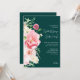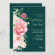 Este elegante convite de casamento verde escura floral cor-de-rosa e esbranquiçado apresenta flores cor-de-rosa pinceladas, verde, bela caligrafia escrita por na moda num fundo esmeraldo rico e moderno. Este convite é perfeito para o casal ter seu casamento em um romântico, formal, elegante, moderno, chique, sofisticado, moda, casamento de jardim ou local de casamento ao ar livre.