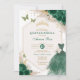 O convite perfeito para a quinceañera da sua filha está finalmente aqui! Este convite cômico e adorável da quinceañera apresenta bonito rosas verdes esmeraldas, um vestido elegante de princesa, uma tiara de ouro cintilante, borboletas fluidificantes e elementos do livro tropical. Clique no botão "personalizar mais" se quiser reorganizar e formatar o estilo e a posição do texto.