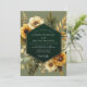 Experience woodland elegance with this sophisticated botanical design. A stunning arrangement of creamy anemones, golden poppies, and delicate roses blooms against a deep emerald and sage green backdrop. Luminous golden foliage adds a touch of warmth, creating a rich and moody atmosphere for a memorable affair.
