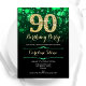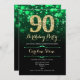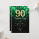 convite de aniversário 90. Elegante esmeralda verde e design preto com ouro brilhante falso. Apresenta na moda diamante, luzes e fontes de script. Homens ou mulheres convidam no dia. Perfeito para uma festa de aniversário adulta na moda. Personalize com seus próprios detalhes. Envie-me uma mensagem se precisar de mais personalização. Impressos convites Zazzle ou modelo de impressão digital instantânea para download.