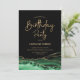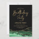 Emerald verde, preto e convite de aniversário de agata dourado. Elegante design moderno com cor aquática verde agate marble geode background, faux glitter gold e typografia script font. Trendy convida o cartão perfeito para uma comemoração de dia das mulheres na moda. Impressos convites Zazzle ou modelo de impressão digital instantânea para download.