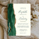 A borda esquerda deste elegante convite de casamento moderno apresenta uma esmeralda verde aquarela agate borda com falsa brilho dourado. O texto personalizável combina manuscrito verde, fontes em copperplate e itálico em um fundo de marfim. O verso apresenta um design emerald verde e dourado.