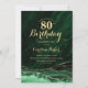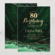 Emerald Green e ouro agate 80 convite de aniversário. Elegante design moderno com aquarela agate marble geode background, faux glitter gold e typografia script font. Trendy convida o cartão perfeito para uma comemoração de dia das mulheres na moda. Impressos convites Zazzle ou modelo de impressão digital instantânea para download.