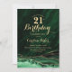 Emerald Green e ouro agate aniversário de 21 anos convite de festas. Elegante design moderno com aquarela agate marble geode background, faux glitter gold e typografia script font. Trendy convida o cartão perfeito para uma comemoração de dia das mulheres na moda. Impressos convites Zazzle ou modelo de impressão digital instantânea para download.