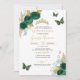 Convites Emerald Green e Dourada Borboleta Floral Quinceañe