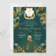 Convites Emerald Green e Dourada Quinceañera Floral