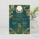 Emerald Green e Dourada Quinceanera, Elegante Floral, Convite de Aniversário