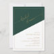 Celebre em estilo luxuoso com nosso Chá de panela Emerald Green e Geométrico Dourado. Este sofisticado design apresenta um fundo geométrico ousado em verde esmeralda rico e branco nítido, definindo um tom moderno e elegante para o seu evento especial. A frase do "chá de panela" é mostrada em um guião dourado em shimmering contra um pano de fundo verde esmeralda diagonal impressionante, adicionando um toque de glamour e refinamento. Personalize este convite refinado com os detalhes do evento, incluindo o nome, data, local e informações de RSVP da noiva. Esses detalhes são apresentados elegantemente dentro de uma linha de borda de quadro dourado, com coordenação de sans serif e serif dourados em um fundo branco de diagonal em negrito. A combinação de design geométrica contemporânea e sotaques de ouro luxuosos faz deste convite uma opção de destaque para um chá de panela chic e memorável.
