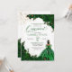 Convites Emerald Green Elegant Rosas e Gown Quinceanera