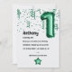 O balão de número de folha verde-esmeralda da Trendy, primeiro convite de aniversário com um talo masculino.