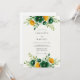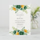 This design features a rich palette of deep emerald green and golden yellow watercolor blooms. Lush ranunculus and roses are nestled among vibrant green leafy branches for a nature-inspired aesthetic. The top and bottom floral arrangements create a balanced and sophisticated botanical atmosphere.